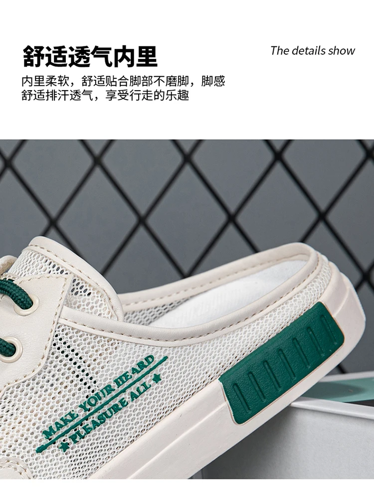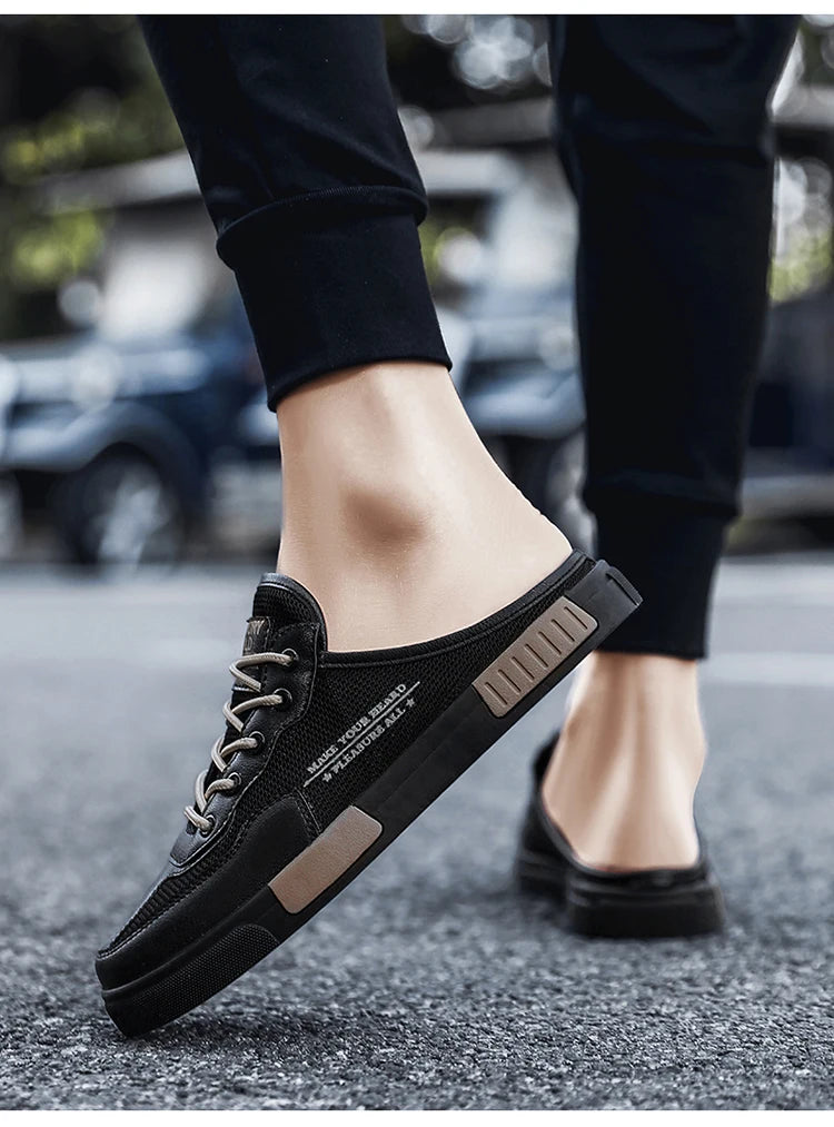 2023 Men's New Lace Up Hollow Breathable Outdoor Comfortable Flat Bottom Half Trailer Men's Shoes