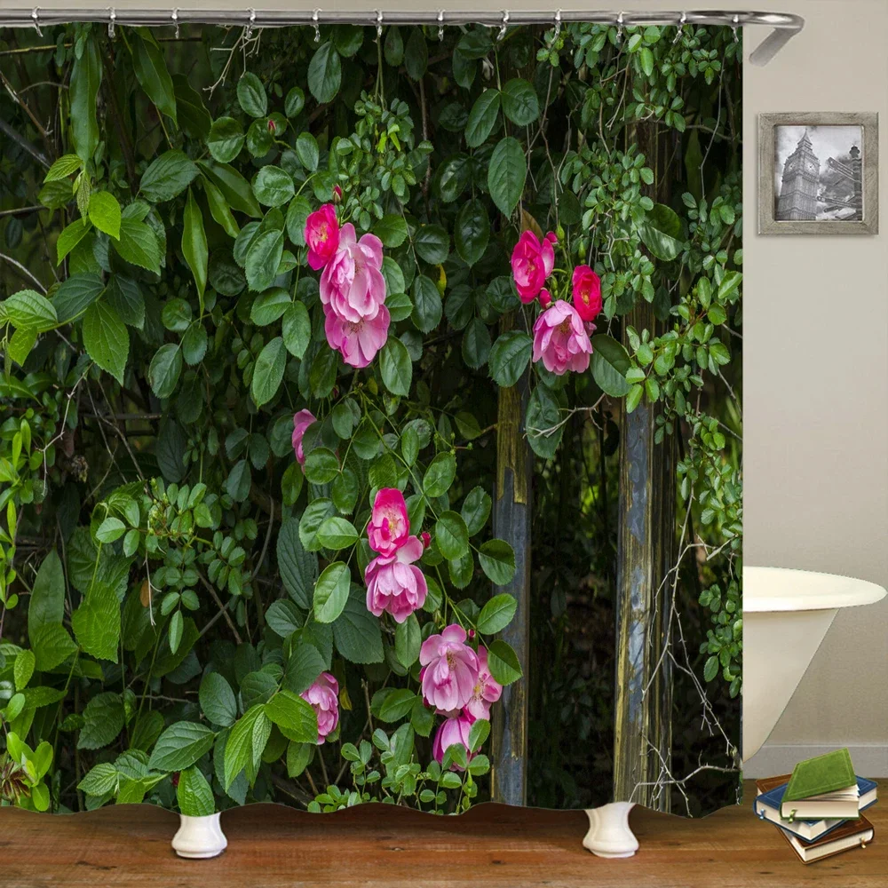3D Printing Flowers Plant Garden Bathroom Shower Curtain Natural Landscape Home Decoration Waterproof Curtain with Hook Curtain