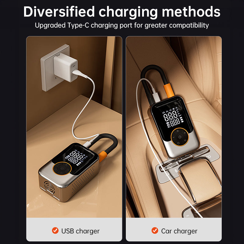 12. Continuous Working Time: 8 - 10min; Working time with 0 - 30psi battery: ~20min (can inflate 2 car tires when fully charged)