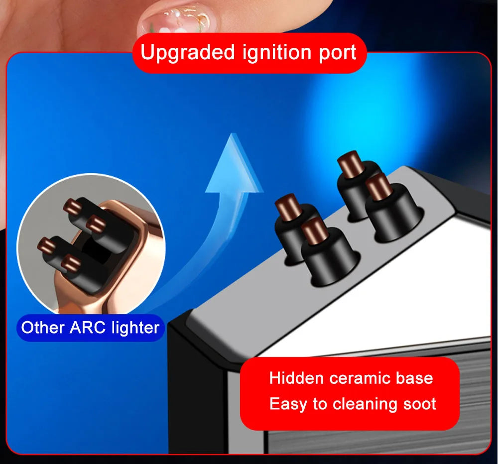 ❤️ Large battery capacity: Our arc lighter has a built-in 500mAh battery (220mAh battery for other lighters), which lasts for a long time and can light at least 5 packs of cigarettes. This windproof lighter is your best choice when you go camping, travelling, survival tactical or hiking.