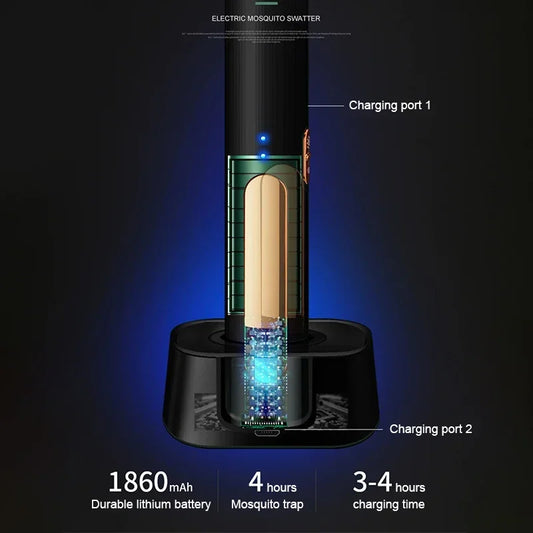 • Mosquito Racket 2 In 1 USB Rechargeable Fly Zapper Swatter Lamp Seduction Trap Summer Night Baby Sleep Protect Tools