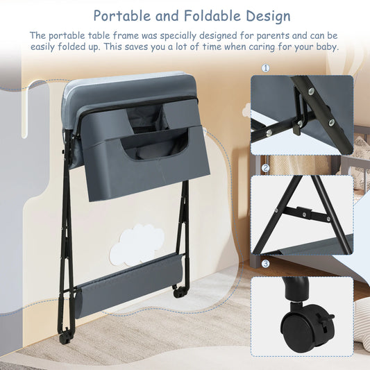WOLTU Height Adjustable Portable Children Kids Cabinet Foldable Baby Changing Table with Wheels Storage Basket