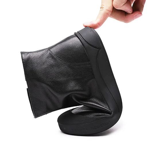 DRKANOL Autumn Winter Genuine Leather Flat Ankle Boots For Women Warm Boots Side Zipper Soft Comfortable Cow Leather Botas H8066