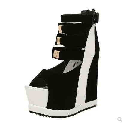 2020Woman Shoes Summer Genuine Women Platform Thick Soles Sandals Wedges High Heel 14cm Peep Toe Mixed Colors Sexy Shoes