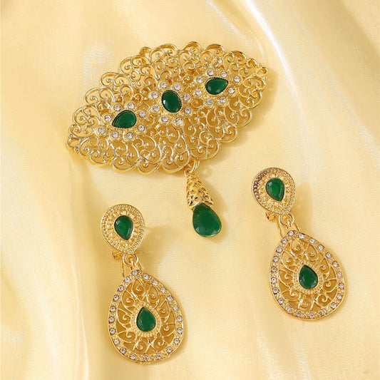 Moroccan ladies' fashion brooch earring set, Bohemian style, bridal banquet accessories, festival clothing ornaments.