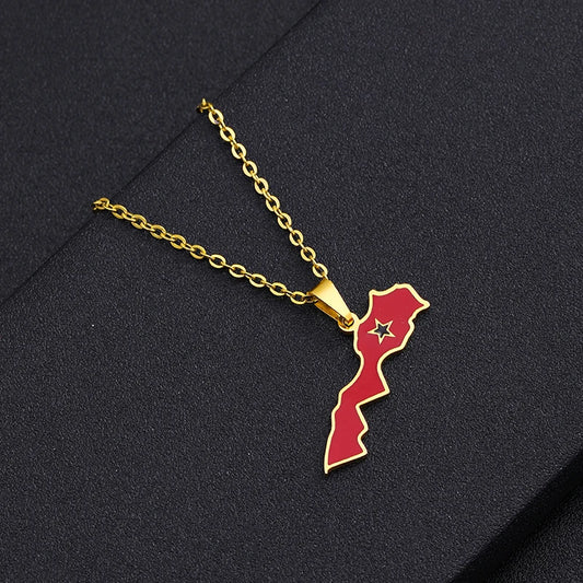 Kingdom of Morocco Map Flag Pendant Necklace Stainless Steel Men Women African Ethnic Jewelry Le Royaume Du Maroc National Flag