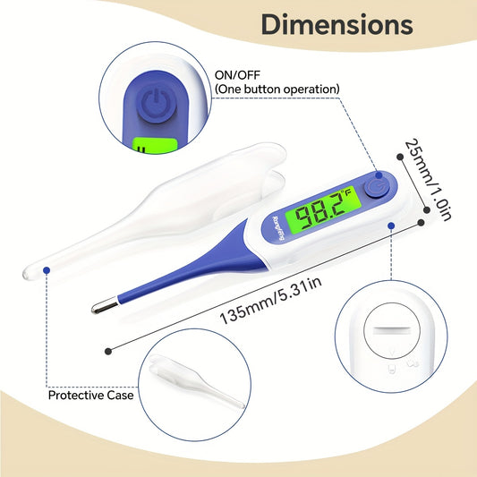 4-Pack Oral Thermometer for Adults, Kids & - FDA Cleared Fast-Reading Digital Thermometer with Backlight, Fever Alarm, 3-Color Display, Flexible Tip & 32-Memory Basal Thermometer - Battery-Powered, Individually Wrapped for Hy