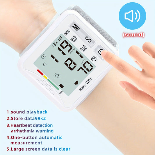 Wrist Blood Pressure Monitor, LCD Display, Audio Prompts, Adjustable Cuff, Irregular Heartbeat Detection, Easy To Use, Perfect For Elderly Care, For Medical And Home Use, Blood Pressure Monitor (without Batteries), Good Gift