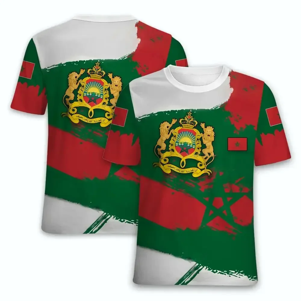 2024 New Morocco Flag Graphic 3D Printed T-shirt Morocco National Emblem Men's Tops National Day Gifts Personalized Tee