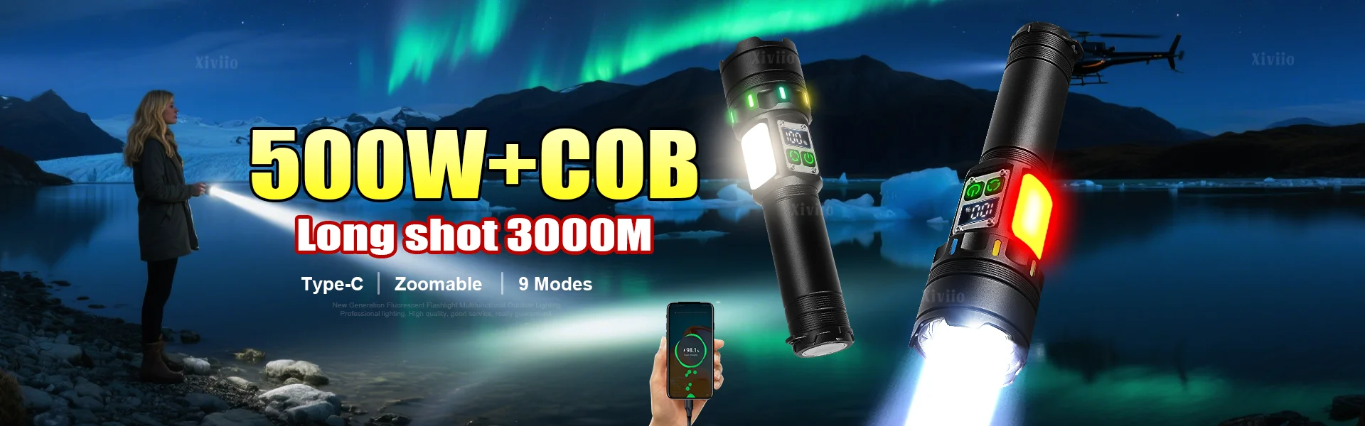 Éclairage puissant : la mèche LED ultra haute luminosité de 500 W est adoptée, avec une luminosité de 2,9 millions de lumens.Grâce à la lentille Hawkeye à haute pénétration, le faisceau lumineux est plus puissant et transparent, éclairant efficacement 3000 mètres.