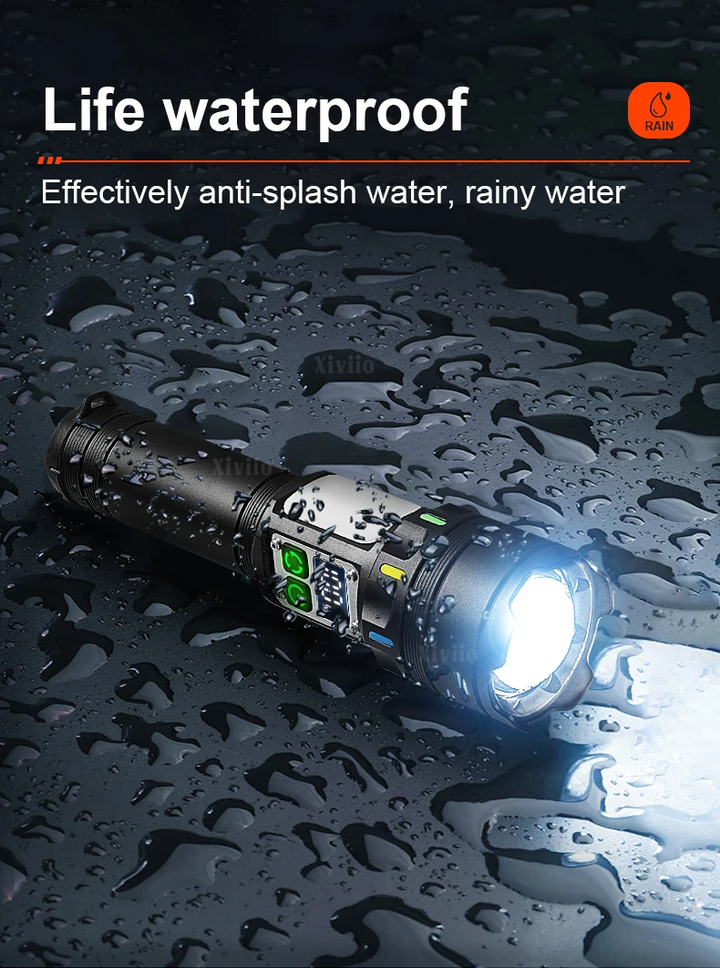 Robuste et durable : fabriqué en alliage d'aluminium de haute qualité + ABS, étanche IPX6 et résistant aux chutes, joint ultra résistant intégré pour isoler la pluie, qui peut fournir une source de lumière vive pour éclairer l'environnement par temps de pluie ou de faible visibilité.