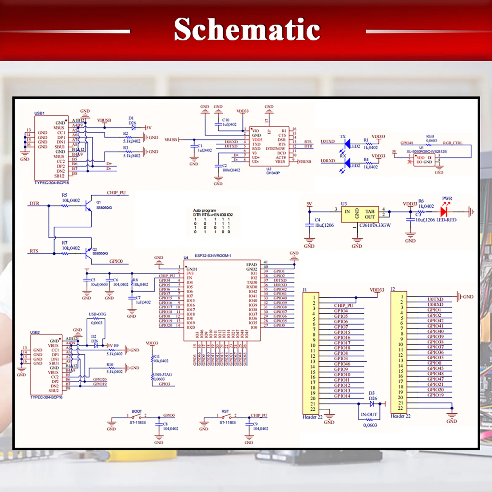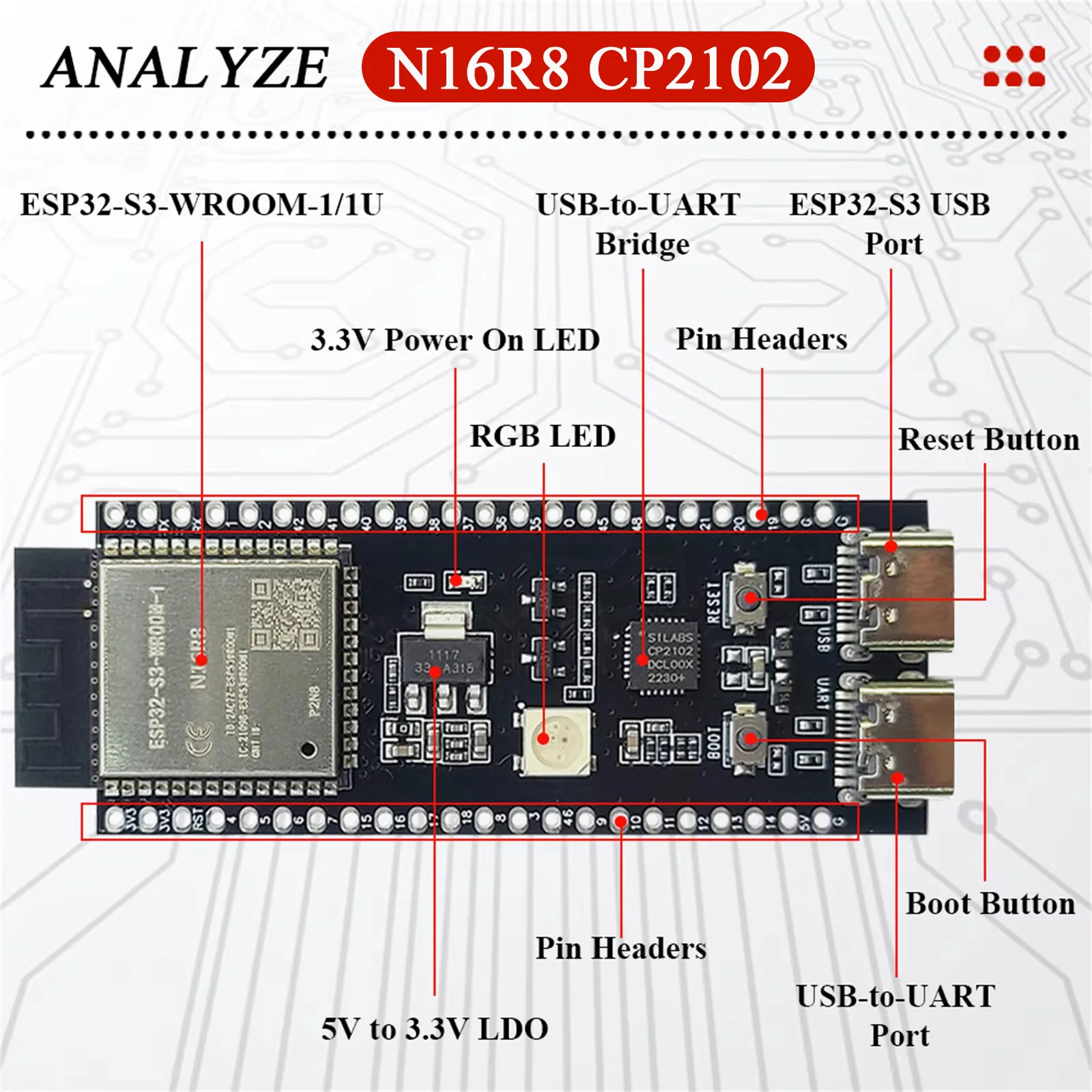 ESP32 S3 Development Boards with Expansion Adapter Kit 2.4G Wifi BT Module ESP32-S3-1 N8R2 N16R8 44Pin Type-C ESP32-S3