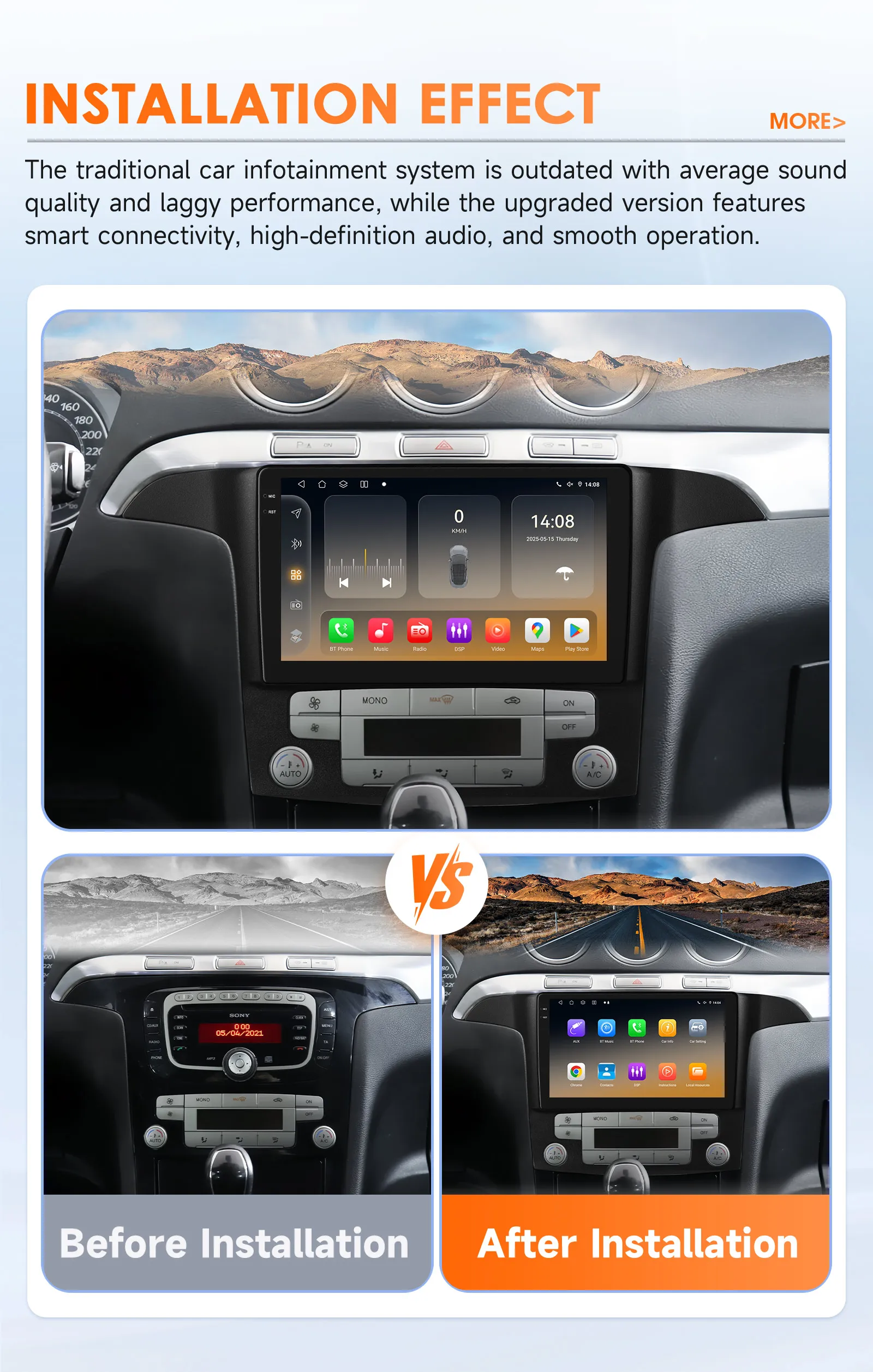 ⑤ Professional installation is necessary,the car maintenance store is the best choice for you;