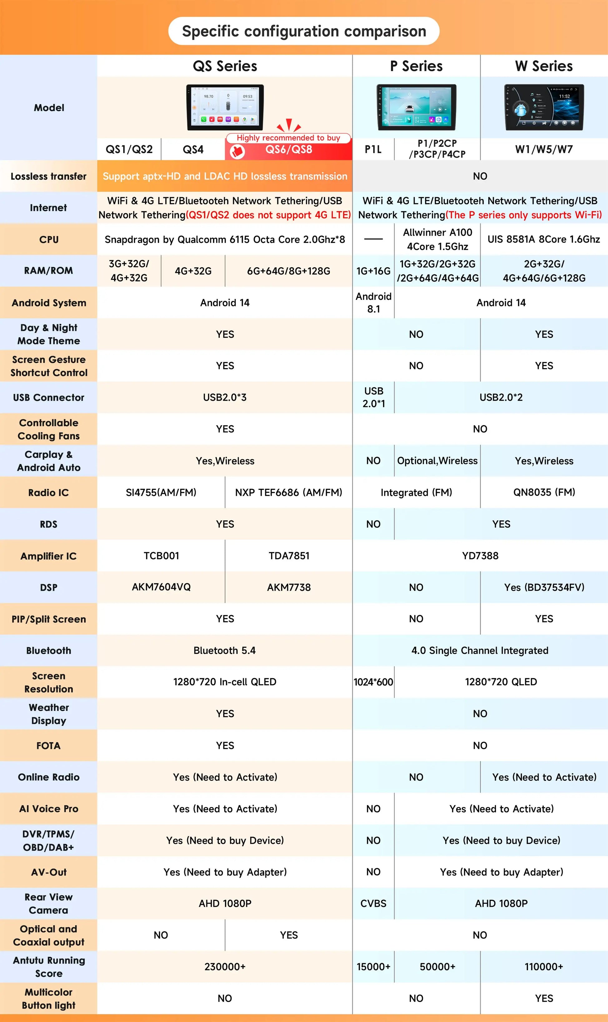 2) Built-in Carplay/ Android Auto: S1/S2/S3/S4/S5/S7/S8 version supporting, just use your phone cable connect it, stable and easy to use;