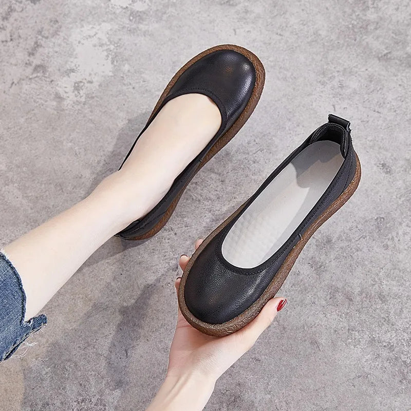 Genuine Leather Flat Shoes for Women Soft Sole Loafers Comfortable Light Ladies Shoes Elegant Retro Mom Shoes Zapatillas Mujer