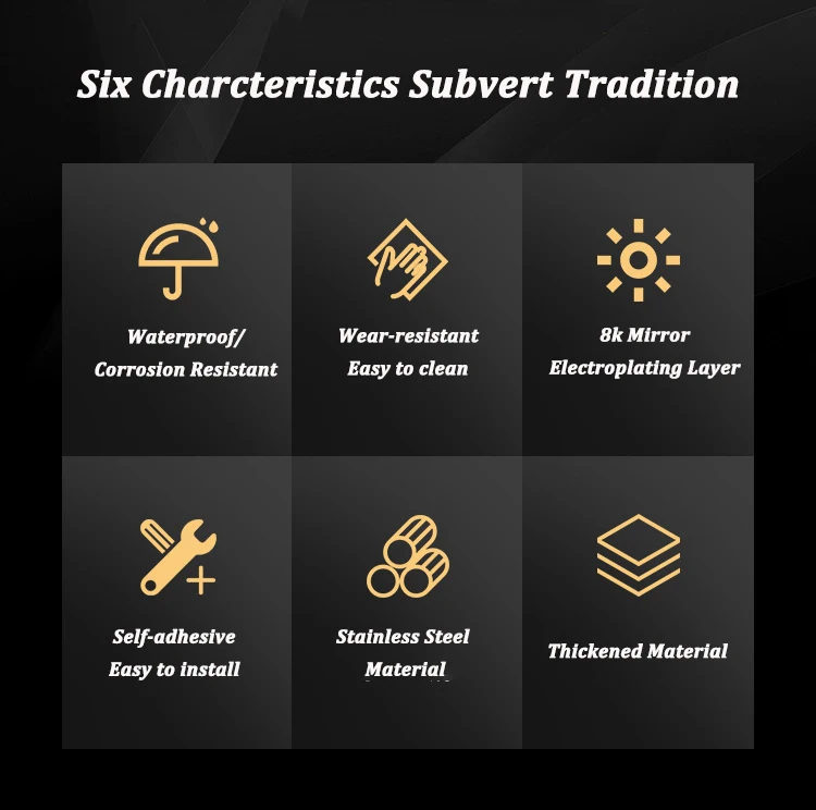 Mirror Stainless Steel Plane Decorative: Gold Wall Sticker
