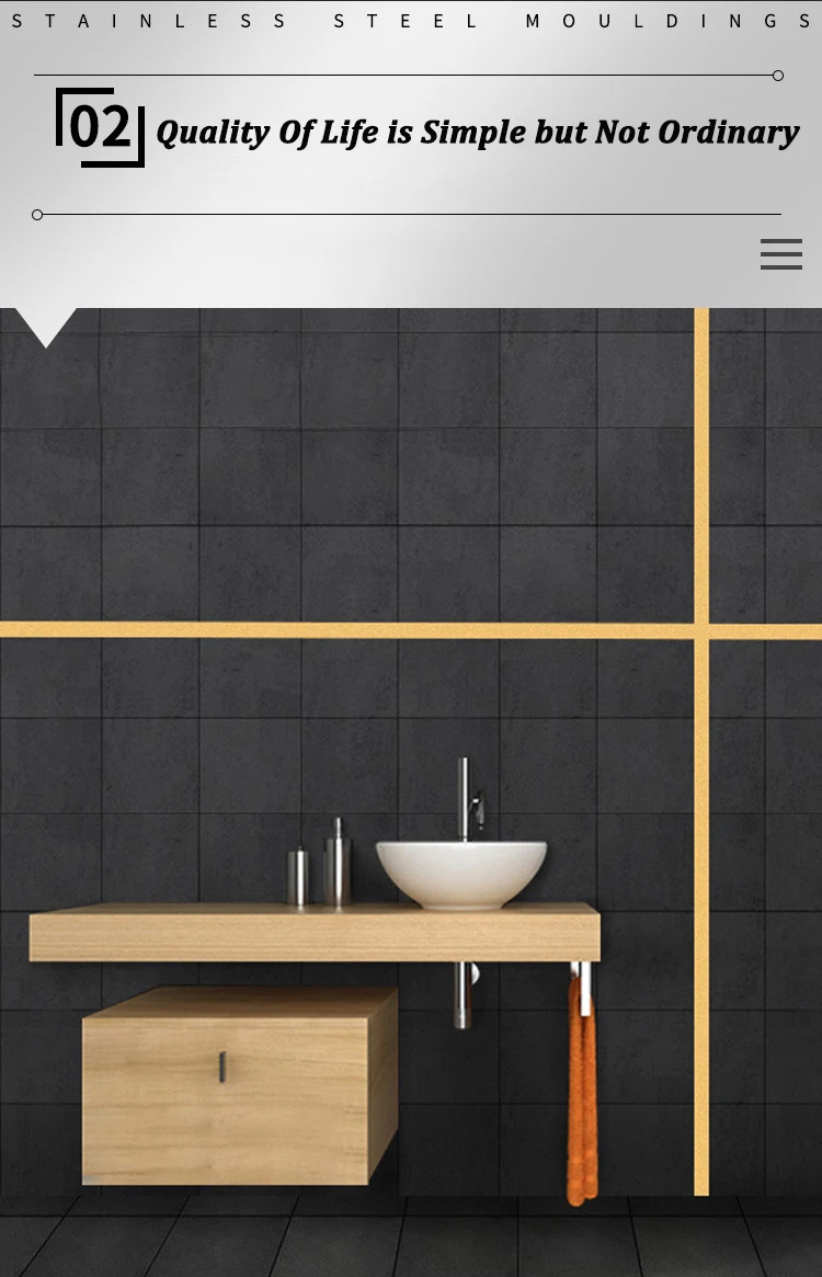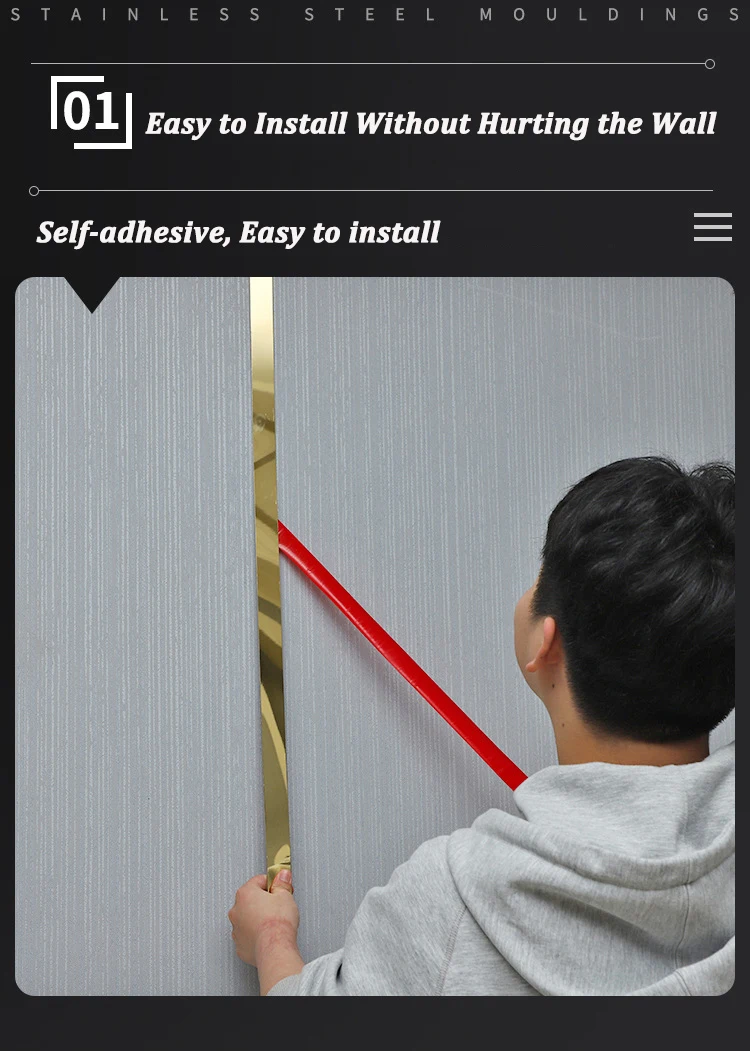 Stainless steel decorative strip, the surface is like a mirror, with self-adhesive, can be installed after tearing off