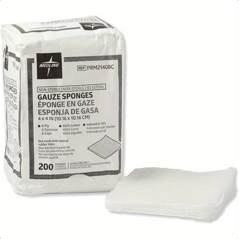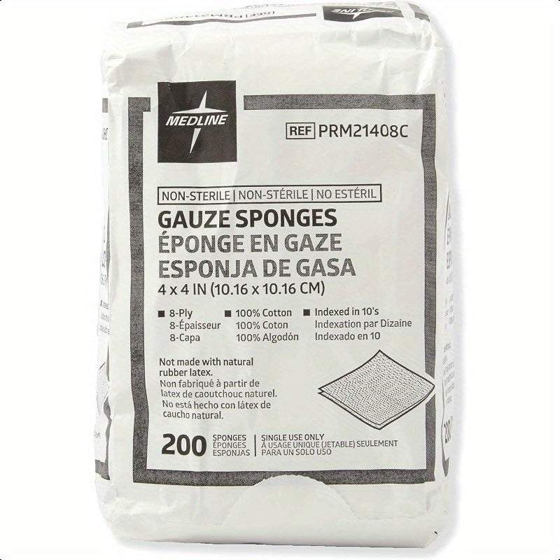 Medline 4x4 Inch Gauze Sponges, 100%, 8-Ply Woven Non-Sterile Gauze, Pack of 200 - Soft & Absorbent for Healthcare, Home, Kitchen, Bathroom & Car Use, Kitchen Cleaning Aid | Simple Packaging | Quality Medical Product