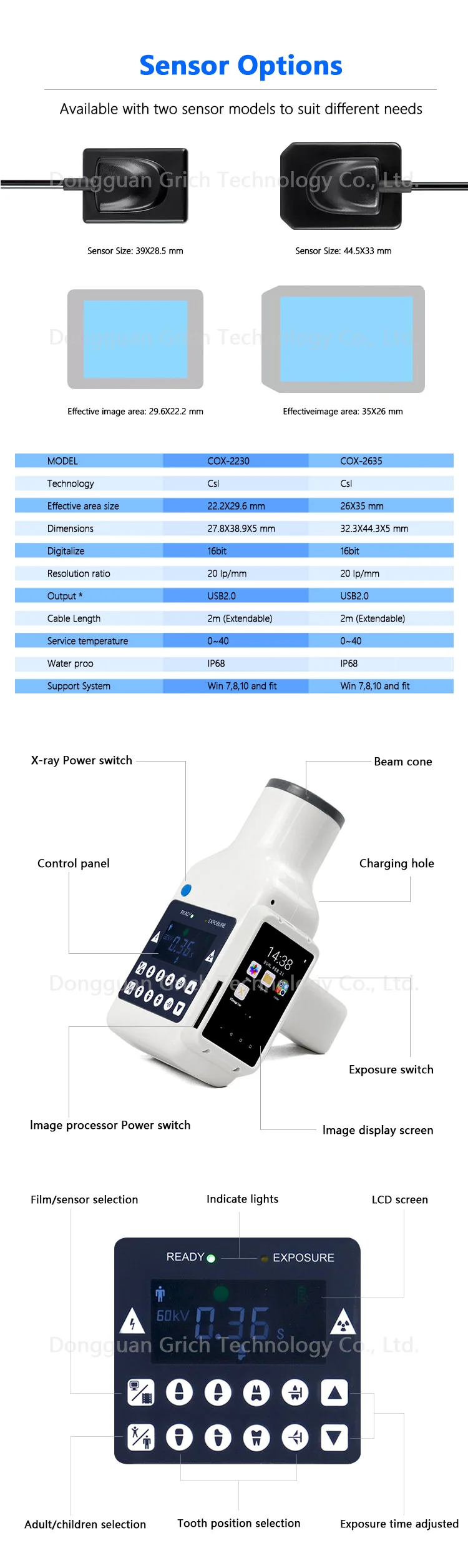 1. Affichage instantané de l'image : lorsqu'il est connecté à nos capteurs, l'écran intégré affiche les images à rayons X immédiatement après la capture.