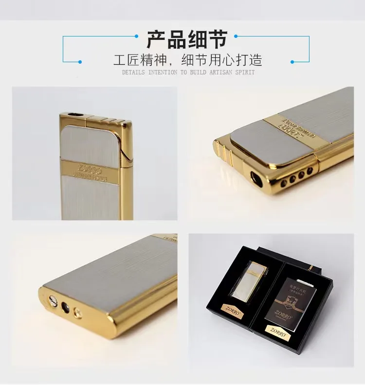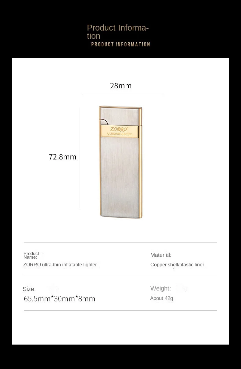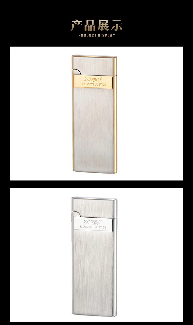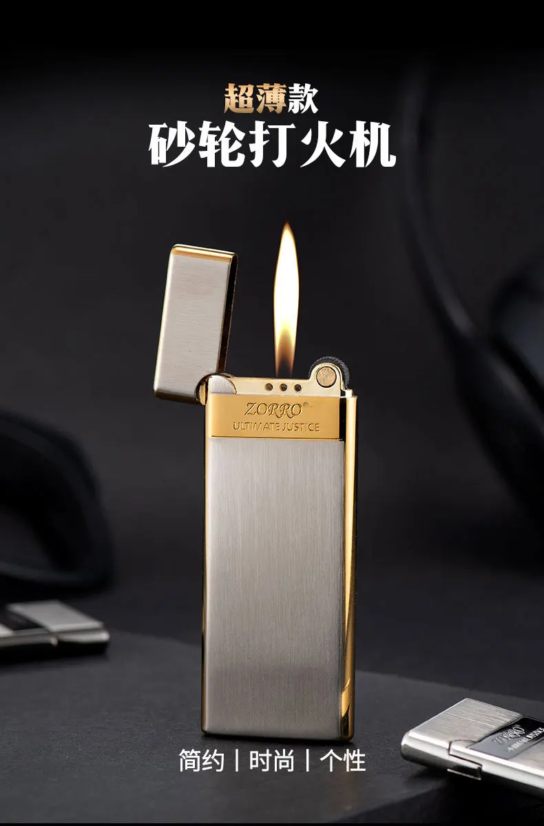ZORRO Ultra-thin Gas Lighter Grinding Wheel Slim Portable Personalized Men's Gift Cigarette Lighter Cigarette Accessories